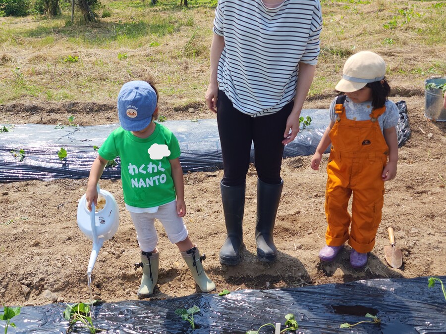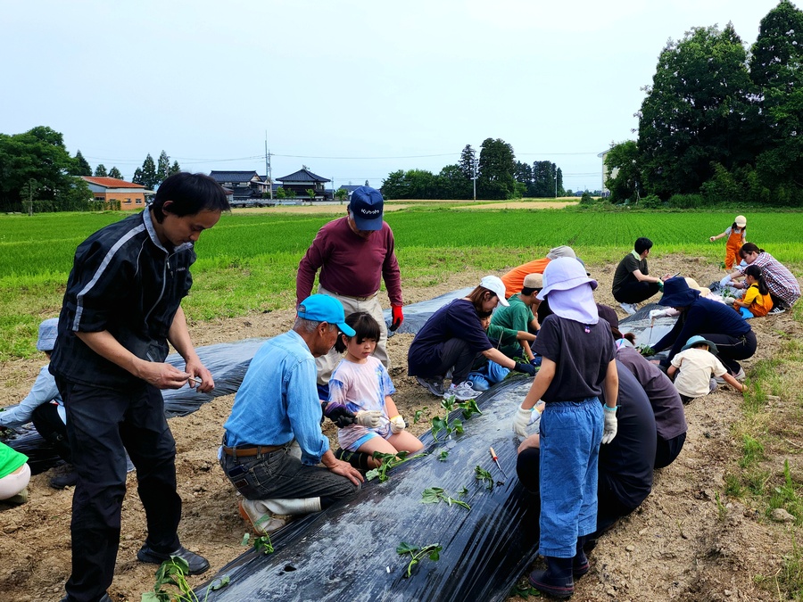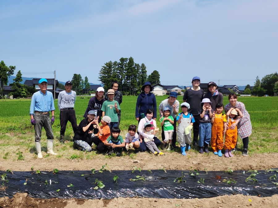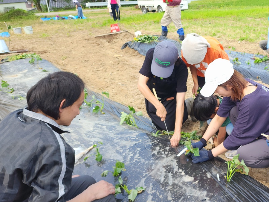農協青年部の方々のご協力を得て、今年もさつまいもの苗を植えました。雨で順延、少し遅めの植え付けとなりました。