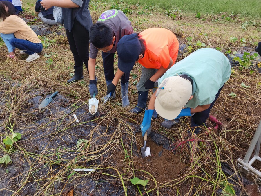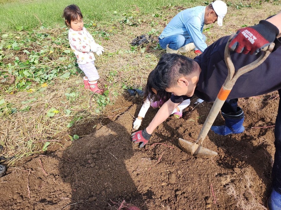 収穫後には、さつまいもを使った焼きいものふるまいもあり、ほくほくの甘さにみんな大満足。秋の恵みを存分に感じる体験となりました。
