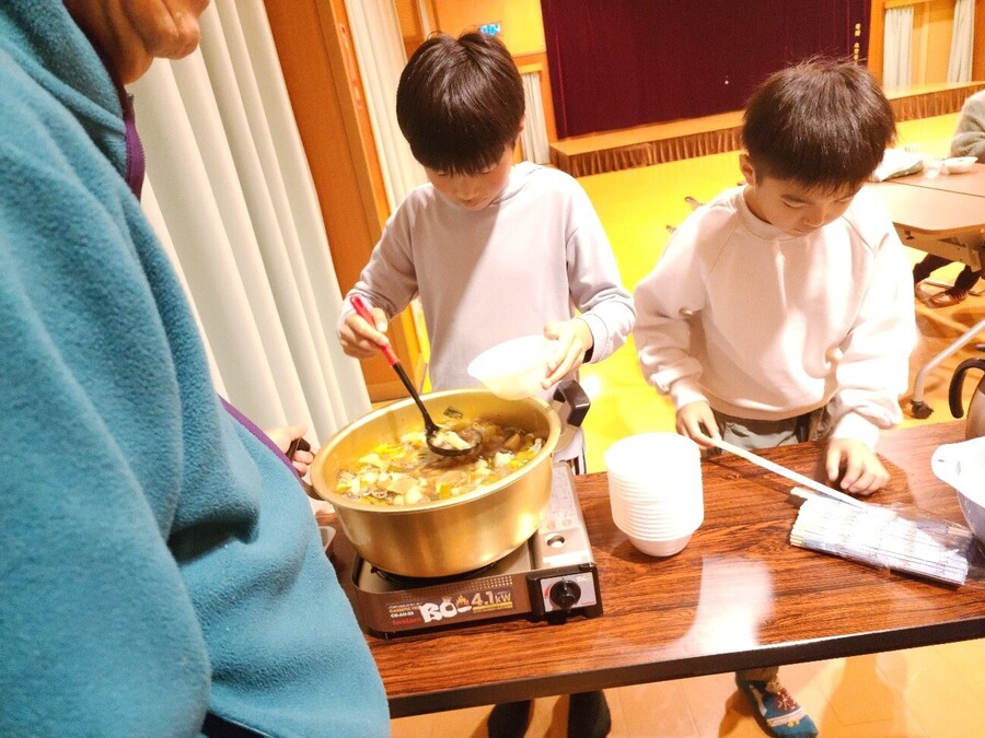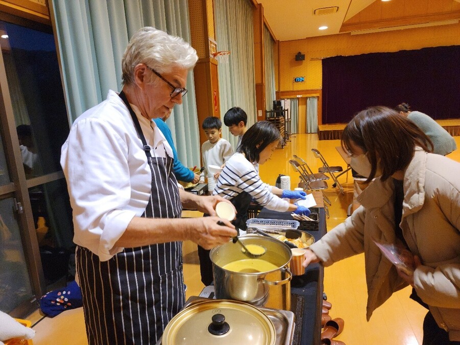 点灯式の後は、ドンさん特製の季節のスープと、サンタが振る舞う野菜たっぷりの鍋を囲み、世代を超えた交流を深めました。